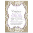 "Jackie" Lavender Lace + Burlap Christening Invitation